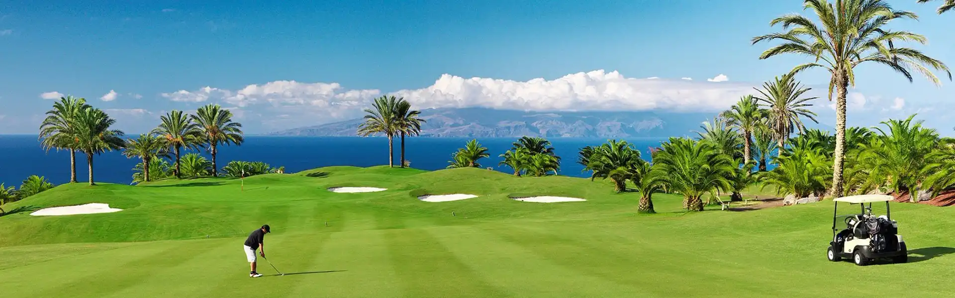 Rising to a peak elevation of 315m above sea level in our luxury resort, the 6,271-metre meticulously sculpted course is ensconced in a landscape featuring more than 25,000 palm trees, white-sand bunkers, and dozens of lakes connected by waterfalls. With incomparable views of the ocean and surrounding Canary Islands from most of its 18 holes, guests truly play on top of the world. Acclaimed as one of the finest in Spain, this is a Tenerife golf course crafted to test and surprise all golfers, no matter their level of expertise.